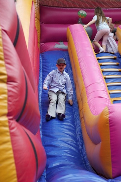 At the end of June I took Adam and Jess to the Post Pals summer party. The pair of them spent the entire afternoon alternating between the inflatable slide and bouncy castle, breaking only for the raffle to be held. As Adam picked out the second winning ticket I might have guessed what was about to happen ... sure enough it was one of his own numbers! Justice was almost done when he selected his prize from the table, and came back proudly holding a box of three black-and-white miniature footballs. No disrespect to whoever kindly donated the said item, but I felt compelled to tell Adam that if he'd had the benefit of being able to read he might have made a different selection. For the soap-on-a-rope he was holding so proudly in his hand at that moment would not have gone down quite so well when he actually got it home and opened it. He exchanged it for playing cards and dominoes.